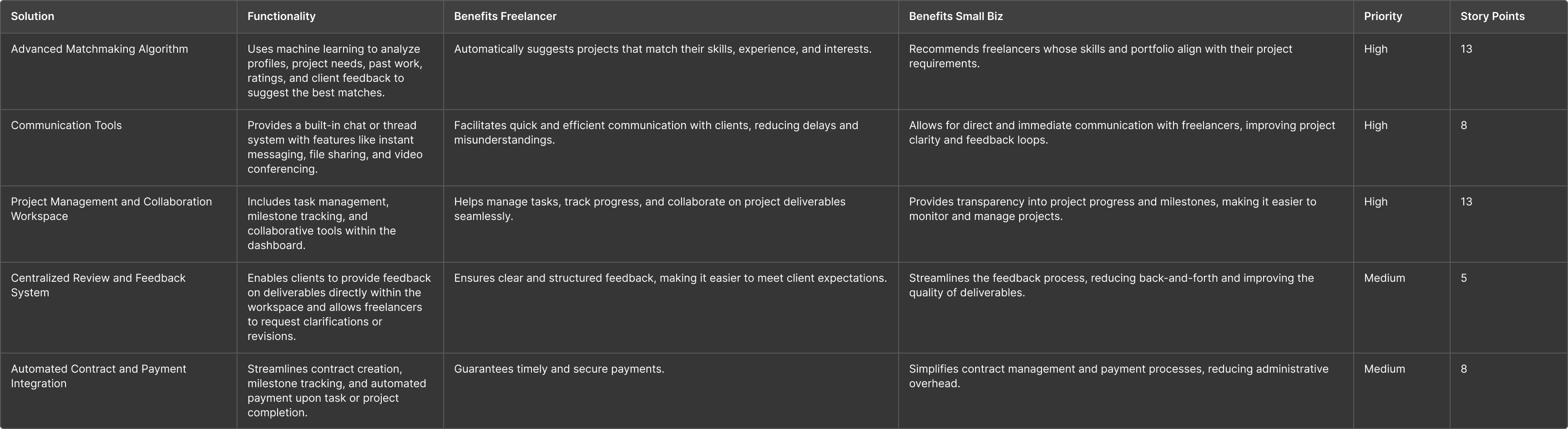 After going through the solutions, the client and I agreed to tackle the top most impactful features - Advanced Matchmaking and PM/Collab Workspace.
